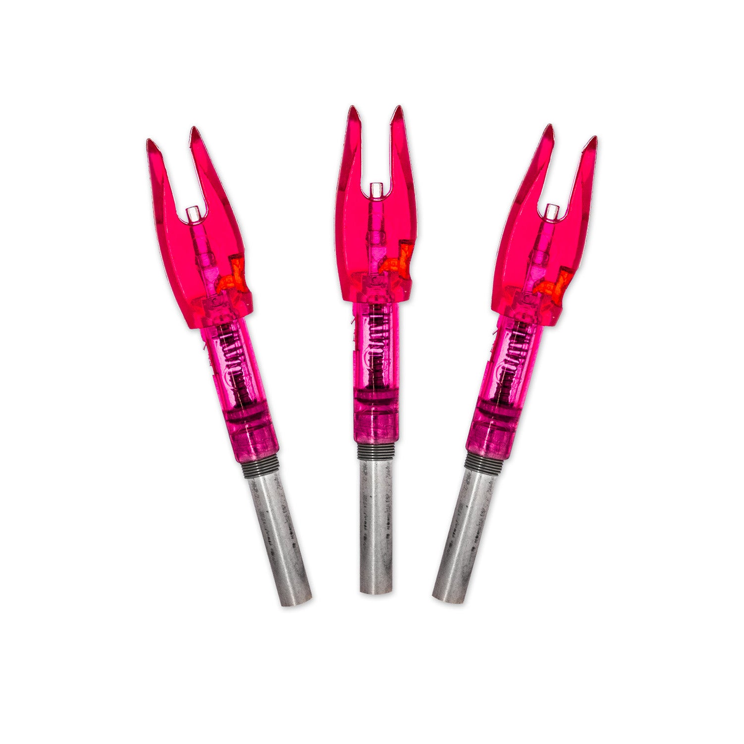 With “no-fail” internal components and bowstring activated dependability, Halo Nocks provides superior, dependable performance with every shot. Halo Nocks provide superior, dependable performance with every shot. Their patent pending design wont accidentally turn on when placing on your bowstring.  No matter how hard you push on the nock, it won’t activate until it leaves the string.  In addition, this innovative design avoids any risk of a “mini-dry fire” that can occur with other lighted nocks that slip forward during release. The Halo Nock is refreshingly simple to use and available in a variety of colors and sizes. Sold in a 3 Pack