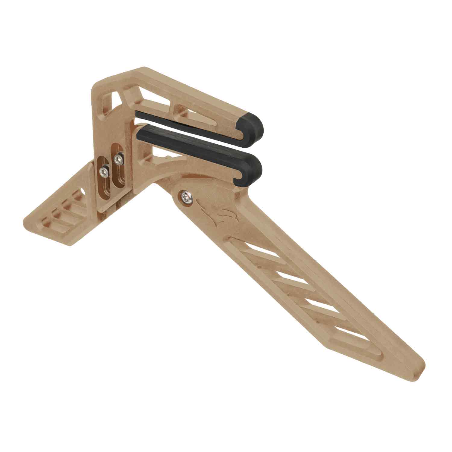 The Raptor will keep your bow upright and off the ground while checking groups. Rock solid construction from lightweight nylon and premium hardware ensure longetivity. Accommodates up to 3.25" limb width with adjustable limb thickness. Foldable design for versatile storage in your quiver, stool, or pocket.