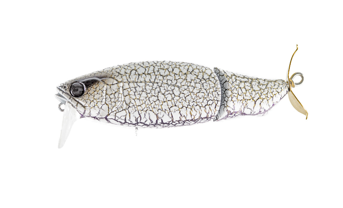 The Megabass i-LOUD is a jointed topwater prop bait which showcases the Rudder Action Balancer System (PAT.P) of the i-JACK for devastating action and sound. Housed in a new concept wakebait/propbait designed by ITO ENGINEERING, the RAB System emits a resounding ‘knock’ as it throws its weight from side to side, giving off a strong sonic presence as it helps power the outsized action of Megabass i-LOUD ’s jointed body. Rear prop adds another layer of lively sound, and leaves a bubble trace along the retrieve line. With a large profile, and even larger action and sound, i-LOUD represents an aggressive approach to activate the feeding modes of dormant monsters, and trigger explosive bites.