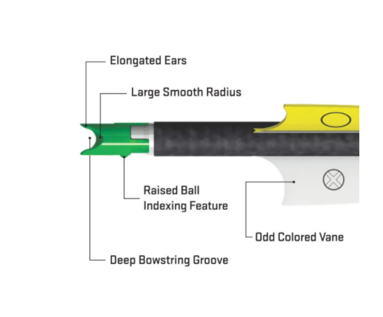 The Alpha-Nock’s deep groove and large radius base “holds” the bowstring in place on extremely narrow crossbows to prevent “shoot-over” or “shoot-under”. Sold in packs of six. Increases String-to-Nock Engagement by 28%