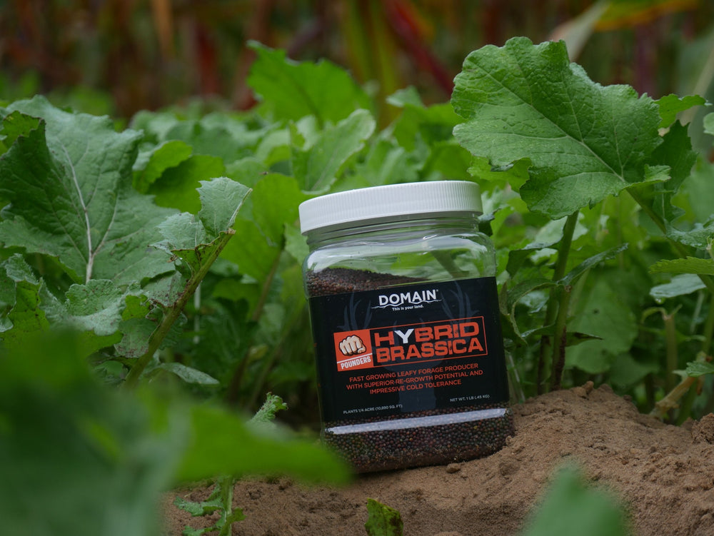 DOMAIN POUNDER - HYBRID BRASSICA OFFERS YOU THE OPTION TO PLANT IT ON IT’S OWN OR ADD IT TO YOUR FAVORITE DOMAIN FOOD PLOT MIX.