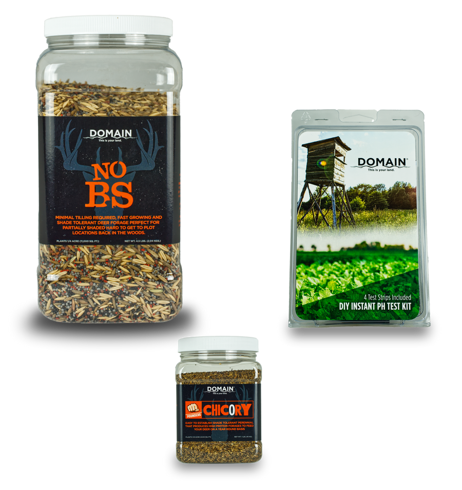THE NO TILL COMBO STARTER PACK OFFERS THE IDEAL PACKAGE FOR THOSE SMALL HARD TO GET TO FOOD PLOT LOCATIONS. NO HEAVY EQUIPMENT NECESSARY WITH THIS COMBO ALL YOU NEED IS A RAKE AND A LITTLE ELBOW GREASE TO BUILD THE PERFECT DEER “DOMAIN”.