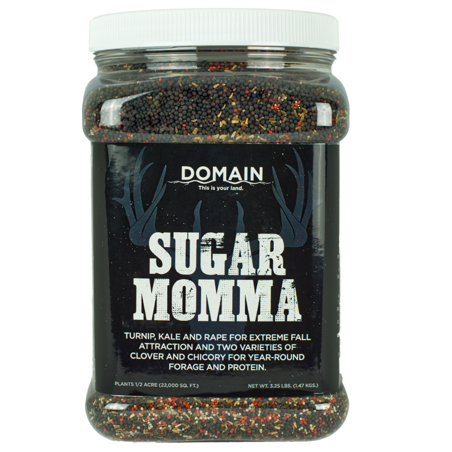 SUGAR MOMMA CAN LAST UP TO 3+ YEARS AND IS THE PERFECT FOOD PLOT CHOICE IF YOU HAVE ONE FOOD PLOT ON YOUR PROPERTY THAT NEEDS TO HANDLE GRAZE PRESSURE, ATTRACT DEER AND FEED THEM YEAR ROUND. NOTHING PROVIDES MORE BANG FOR YOUR BUCK THAN SUGAR MOMMA!