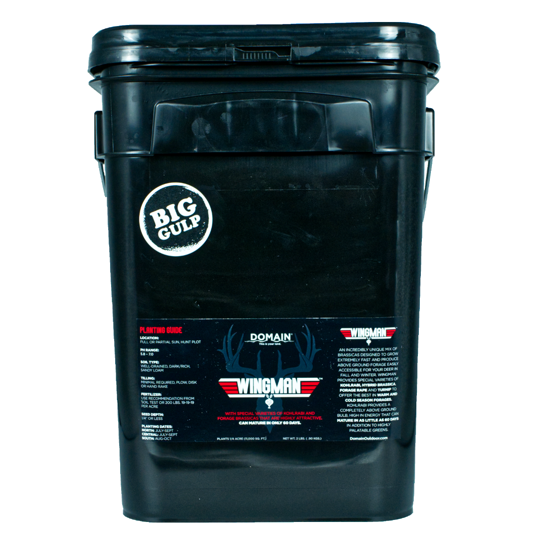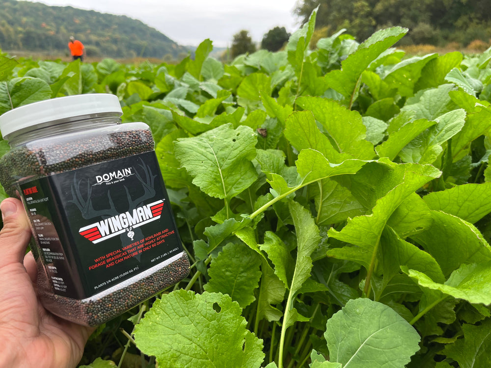AN INCREDIBLY UNIQUE MIX OF BRASSICAS DESIGNED TO GROW EXTREMELY FAST AND PRODUCE ALL ABOVE GROUND FORAGE EASILY ACCESSIBLE FOR YOUR DEER IN FALL AND WINTER. WINGMAN PROVIDES SPECIAL VARIETIES OF KOHLRABI, HYBRID BRASSICA, FORAGE RAPE AND TURNIP TO OFFER THE BEST IN WARM AND COLD SEASON FORAGES. KOHLRABI PROVIDES A COMPLETELY ABOVE GROUND BULB, HIGH IN ENERGY THAT CAN MATURE IN AS LITTLE AS 60 DAYS IN ADDITION TO HIGHLY PALATABLE GREENS. IT IS SUPPORTED BY THREE DIFFERENT TYPES OF BRASSICAS WITH INCREDIBLE LEAFY FORAGE PRODUCTION. THIS IS THE PERFECT FOOD PLOT MIX FOR HUNT PLOTS FROM THE NORTHERN US TO THE SOUTH AND DOESN’T REQUIRE HEAVY EQUIPMENT TO PLANT. AS YOU TAKE ON THE CHALLENGES OF THE UP-COMING HUNTING SEASON, MAKE SURE YOU’VE GOT YOUR “WINGMAN” BY YOUR SIDE TO HELP MAKE IT THE BEST SEASON YET.