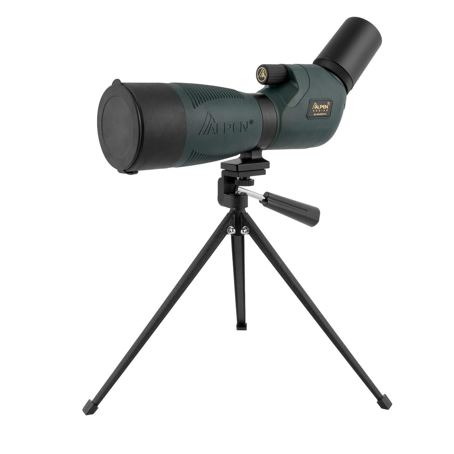 Other features include a 45-degree angled eyepiece with a 360-degree adjustable body collar; an extendable sunshade; a portable 12-inch swivel-head tabletop tripod; and a durable, padded field carrying case. The scope carries Alpen's lifetime warranty against defects in materials and workmanship.