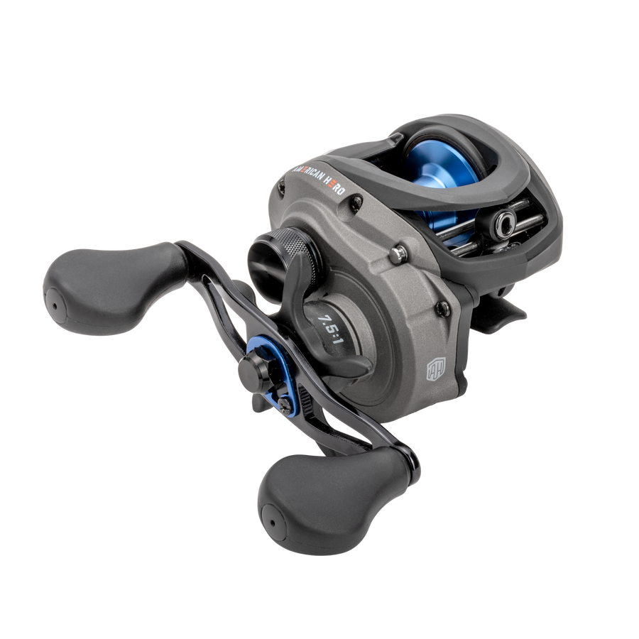 With the ability to excel under any condition, Lew’s® American Hero Baitcast Reel is a force to be reckoned with. With a lighter weight and lower profile than its predecessor, the American Hero® Baitcast Reel features a one-piece graphite frame with lightweight graphite sideplates that house a 5-bearing system with stainless steel double shielded ball bearings, high strength solid brass Speed Gears® that are precision cut on Hamai CNC machines, and a Rulon max drag system with 15 lbs. of drag power. The externally adjustable Magnetic Control System (MCS) is precise and easy to fine tune to your preferences, while the anodized 32mm aluminum spool is strong and lightweight to withstand pressure from any type of line. Precision-engineered to dominate, the Lew’s American Hero Baitcast is meticulously crafted for enthusiasts who demand nothing short of optimal performance.