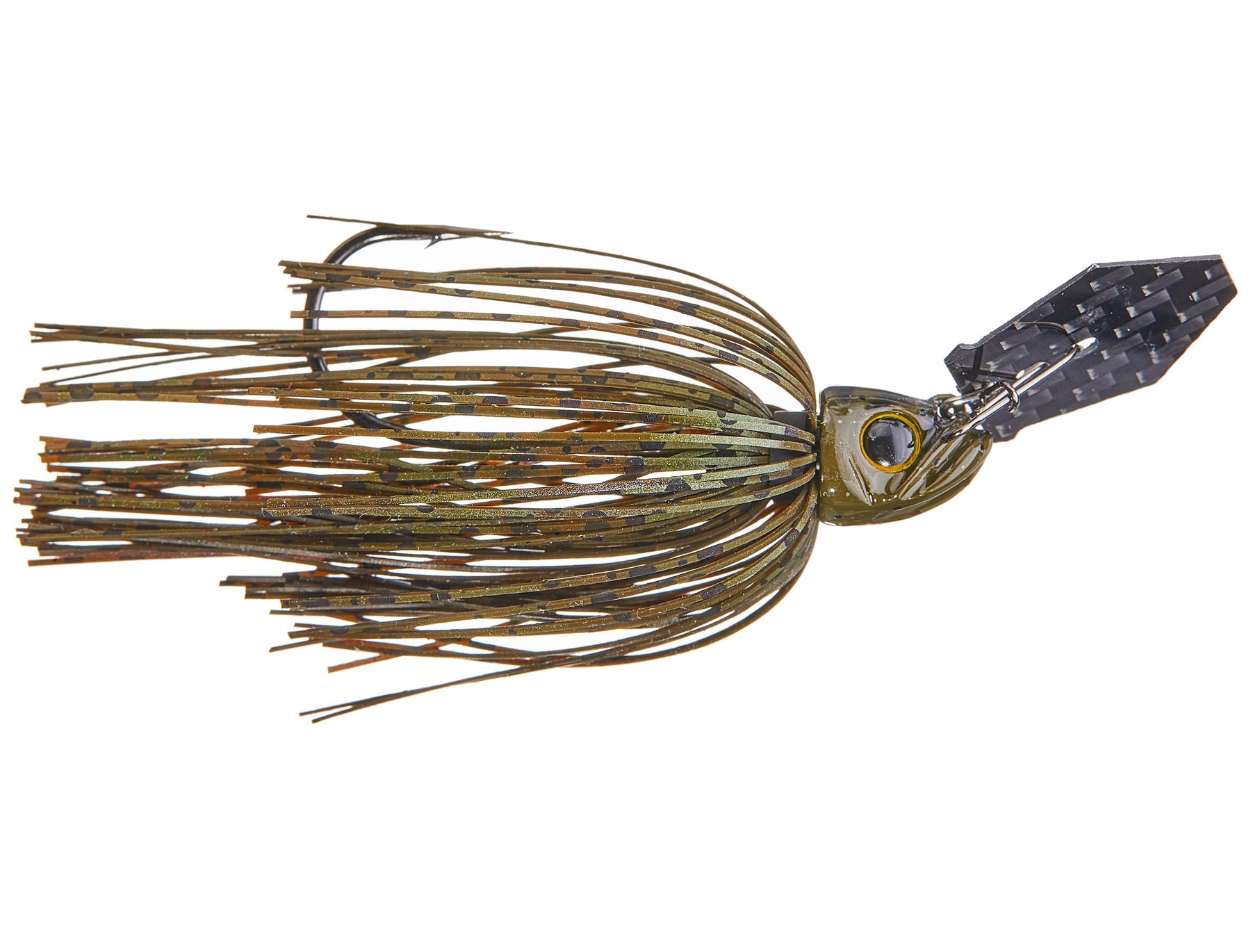 The Shock Blade Carbon Fiber Series elevates your vibrating jig performance to a new level. The blade is manufactured from Carbon Fiber, cutting edge space age material that is light weight, super strong, and used in specialized, high-performance products such as race cars and aircraft. Picasso's unique downsized coffin shape ‘lightning blade” provides a super-fast, tight swimming action with an intense rapid fish attracting vibration. With the smallest turn of your reel handle the blade responds almost instantly and the action begins. The “V” shaped head cuts through grass and deflects off any bottom structure while the patented design keeps the lure down in the strike zone without\ getting lift. Molded around a Japanese made modified O’Shaughnessy style hook for superior quality and unsurpassed sharpness and strength. A double bait keeper system secures your plastic trailer and prevents slippage. The super-soft silicone skirt material creates fish-attracting undulation that is comparable to living rubber material. Proudly made in America!