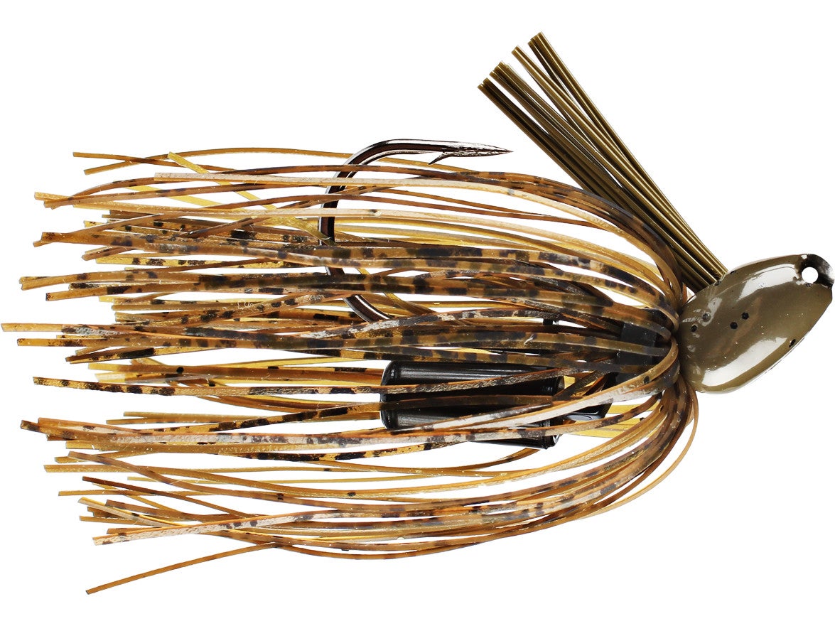 ThePicasso Spider Jigfeatures a completely recessed line tie to prevent the jig from hanging up or rolling in structure. Available in 30 degree Extra wide gap hook or Original Round bend flipping hook. The Picasso Spider Jig has a very vertical fall in the Round bend hook version which makes it very accurate to hit your target.