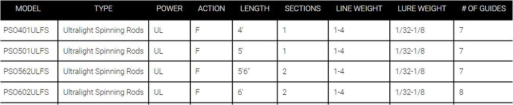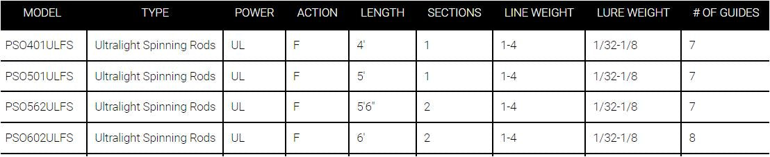 These superior ultralight actions come in lengths up to 8’ for a combination of casting power with light lures—shock absorbing action to handle strong fish on ultra-fine lines. Micro-pitch taping of the blank during curing assures even distribution of resin and graphite for maximum power and sensitivity.