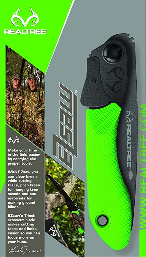 Make your time in the field easier by carrying the folding EZ Saw made by Realtree. You can clear brush while cutting trails, prep trees for hanging tree stands and cut materials for making ground blinds. It features a 6" steel crosscut serrated blade which locks closed. The rubber grip handle gives you comfortable use with a firm grip.