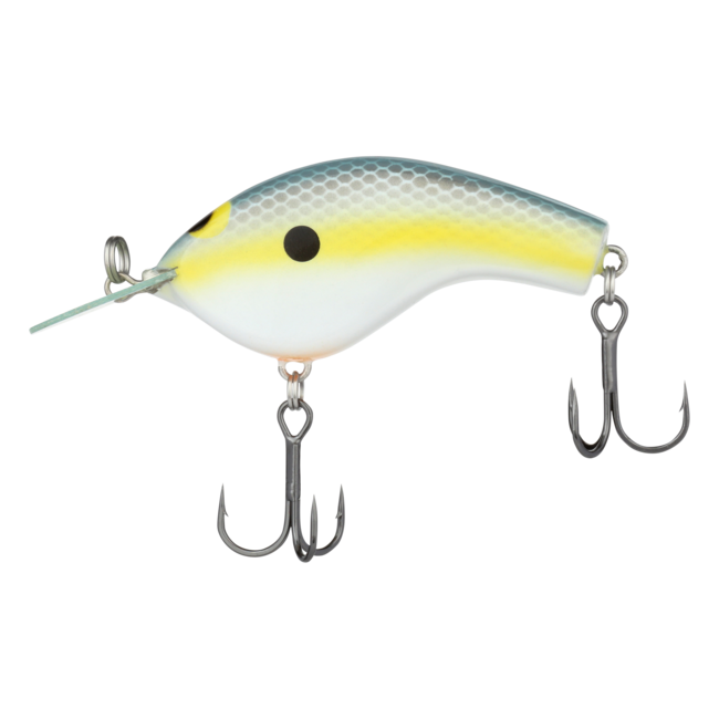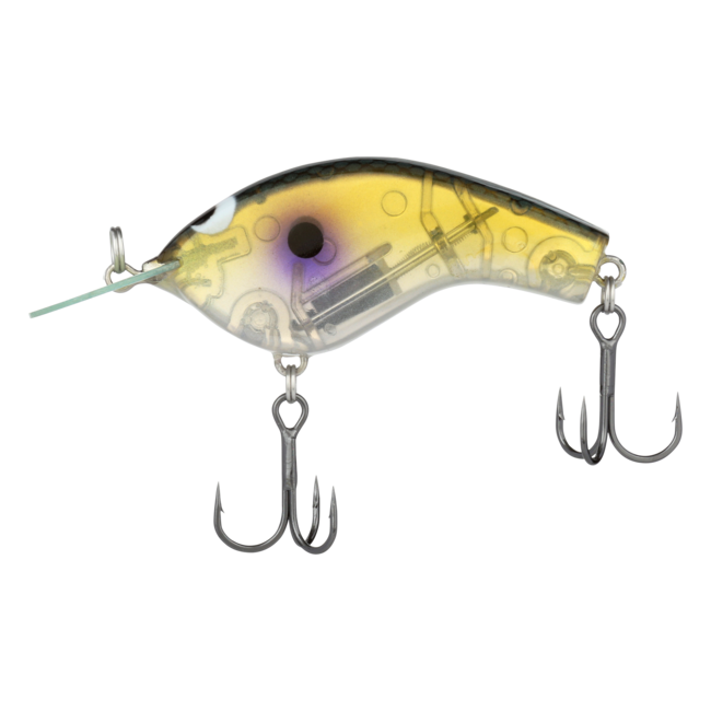 The Macbeth Flat 57F is a shallow-running flat-sided crankbait that employs Shimano's JET BOOST lure technology to defeat the typical unstable casting performance of flat-sided crankbaits. JET BOOST technology utilizes centrifugal force to stabilize the flight posture of the MB-57F Flat and improve casting distance and accuracy without sacrificing swimming action. The MB-57F Flat features a Circuit Board round bill to produce a tight rolling action with a subtle body flick and a 3 to 5 feet diving depth. The Macbeth Flat slowly floats, allowing it to remain longer in the strike zone when fishing cold water or pressured fish.