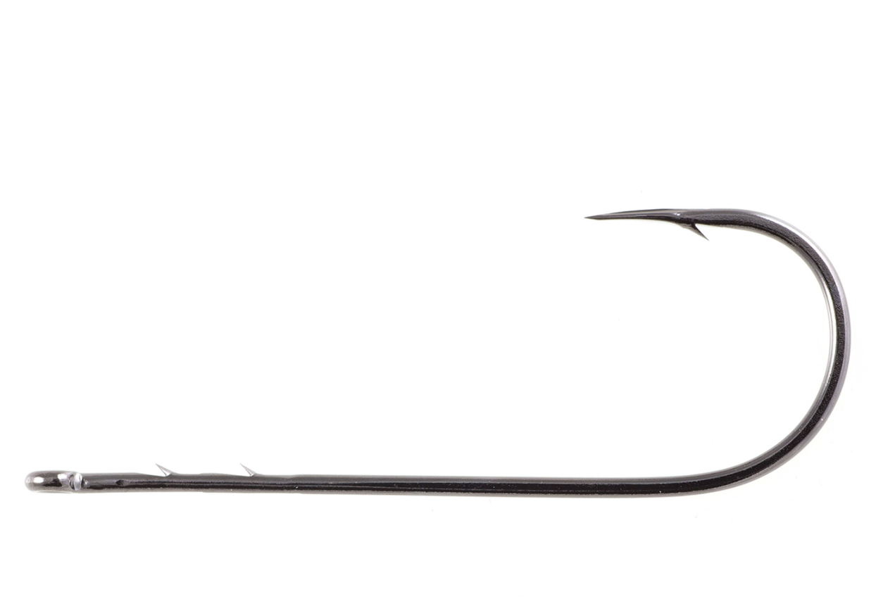 Straight Shank worm hooks, ideal for split-shotting plastic worms for wary bass. Features include a round bend, Cutting Point™, black chrome finish and baitholder slices on the inside of the straight shank.