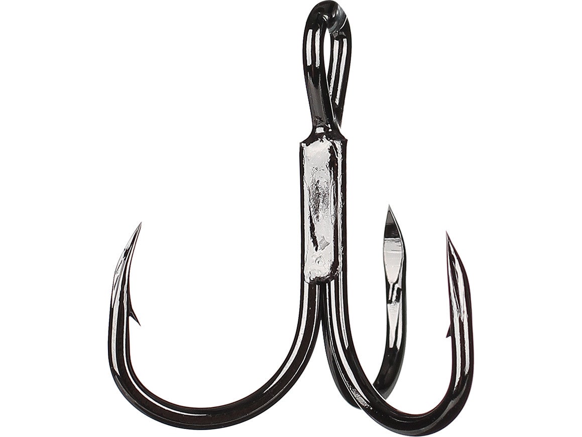 ST-41 TREBLES, 2X strong with a corrosion-resistant black chrome finish, are the ideal replacement hooks for improving the hooking power of heavy freshwater and most varieties of saltwater plugs, spoons and die-cast jigs. Lethal when used as a "stinger" for rigging natural baits. Features include a short shank, round bends and three slightly curved in Cutting Points.