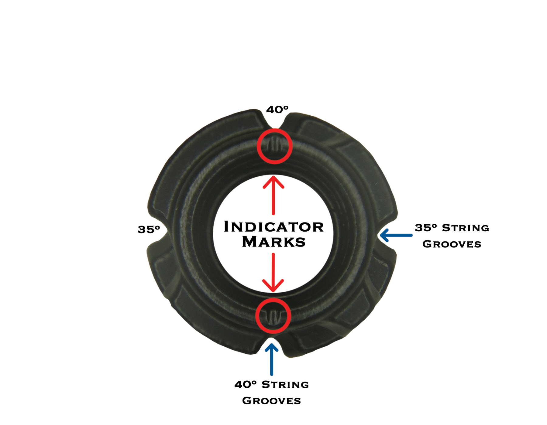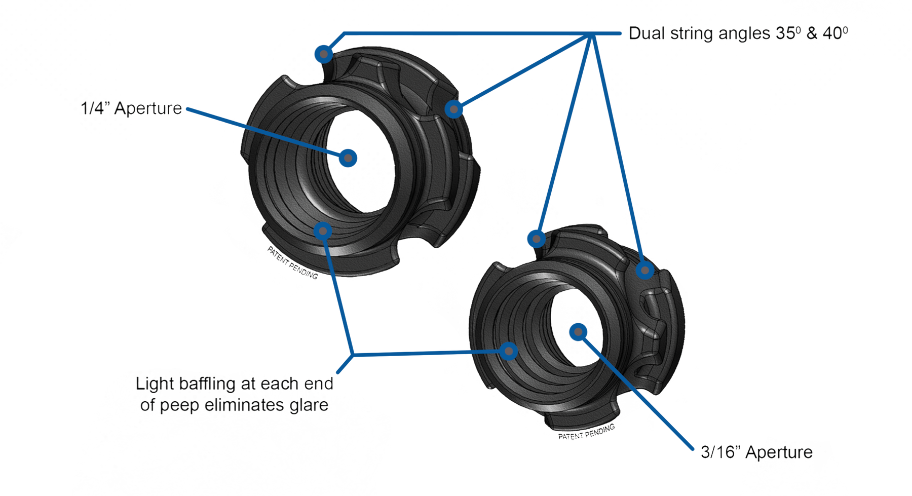 Dual string grooves provide archers the ability to choose the correct string angle for their particular set up without the need to purchase a second peep sight.  The 35º and 40º string grooves were specifically chosen to accommodate the string angles found on today’s hunting bows.