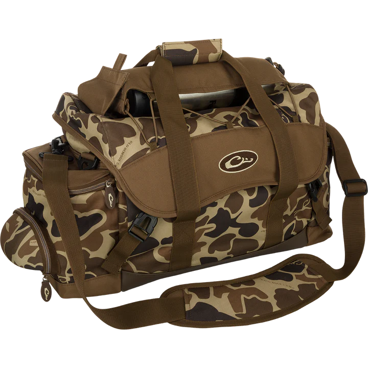 The Drake Blind Bag is loaded with 18 pockets and features for organizing your gear so you can find items quickly when it matters. The main storage compartment is protected by 2 liners. Constructed with a seam-welded vinyl internal liner overlaid with our vinyl organizer, we've taken extra steps in creating a waterproof internal compartment from the bottom to the zipper. Additionally, we’ve enhanced the waterproof protection by adding a new, heavy-duty nylon/TPU bottom that extends 2” up the sides to help keep water from absorbing into the bottom of the bag. This new bottom construction and material also double as a highly abrasion-resistant surface, extending the life of your gear. A larger, improved thermos/jacket sleeve on top holds gear more securely.