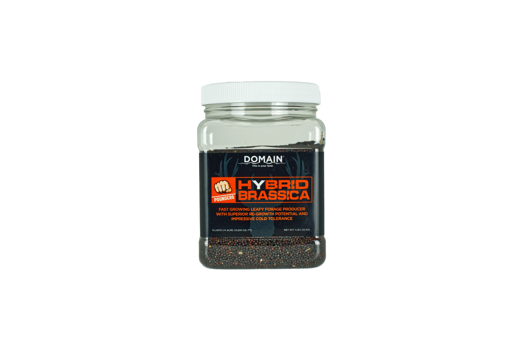 DOMAIN POUNDER - HYBRID BRASSICA OFFERS YOU THE OPTION TO PLANT IT ON IT’S OWN OR ADD IT TO YOUR FAVORITE DOMAIN FOOD PLOT MIX.