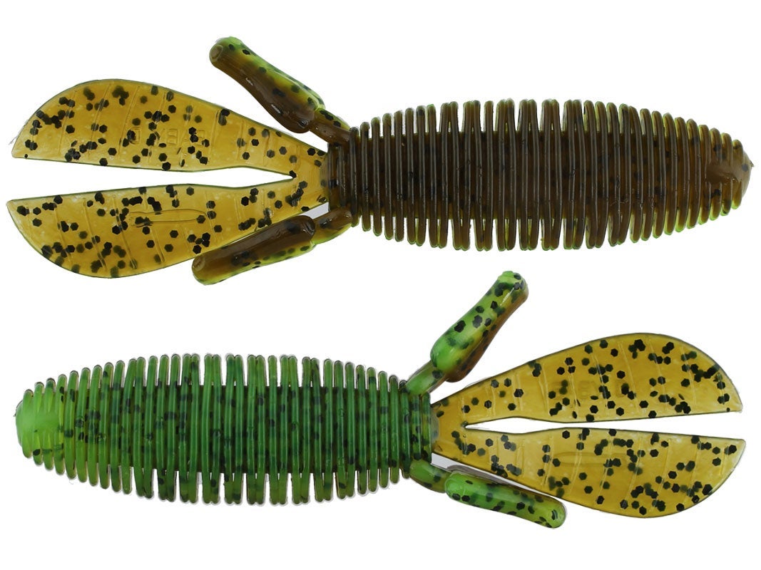 The Baby D Bomb is the smaller offspring to the extremely popular D Bomb. The 3.65” Baby D has a smaller, yet bulky, profile to flip and pitch but it also has finesse applications. When Texas rigging, the bait has a thinner ribbed body that can still accommodate a 3/0 flipping hook. It also can be rigged on a shaky head or drop shot. As always, the hook sets are solid with the Baby D and its thin tails have the subtle action fish love. 3.65" 7 per pack