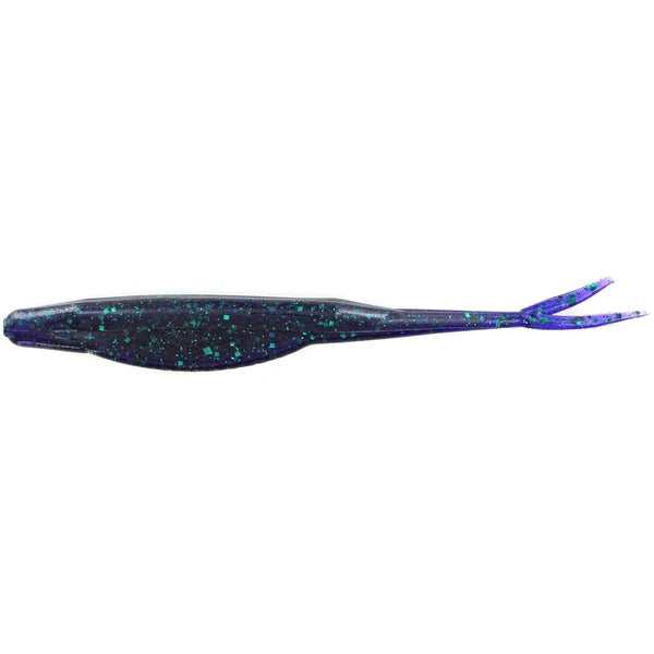 The deep belly of the Super Fluke causes it to dart, glide and knuckleball through the water, while its universal baitfish size allows it to tempt both limit-sized bass and the biggest fish on your lake. Rigged weightless, it skitters across the surface like an injured shad, but a belly-weighted hook or some insert weights allow you to employ it as deep as necessary. Available in a pack of 10.