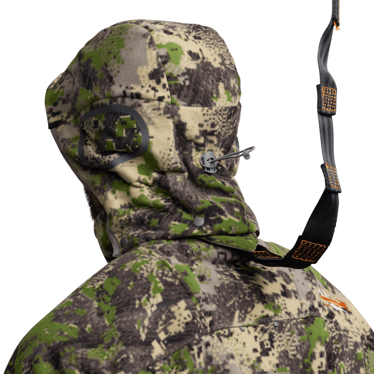 The Stratus Jacket is the total solution for treestand hunts. WINDSTOPPER® by GORE-TEX LABS and a recycled polyester fleece liner block wind and offer lightweight warmth. The brushed fleece face fabric is ultra-quiet, soft, and stands up to brambles or rogue branches in the canopy. An exterior grunt tube pocket offers secure storage, while the mesh bottom allows sound to escape unmuffled. The removable hood features built-in hearing ports to keep you protected from rough weather without obstructing your hearing, and the SITKA safety harness pass through keeps you connected to the tree while donning or removing the jacket.