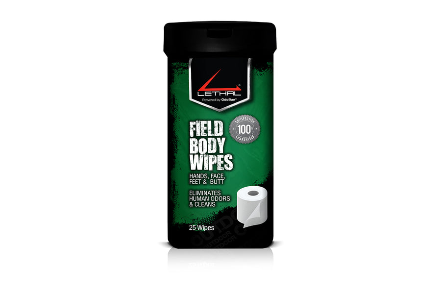 Lethal® Field Body Wipes eliminate odors and stickiness from perspiration as well as blood and urine after field dressing. Plus they eliminate everyday smells such as smoke, food, gas & diesel and even skunk.
