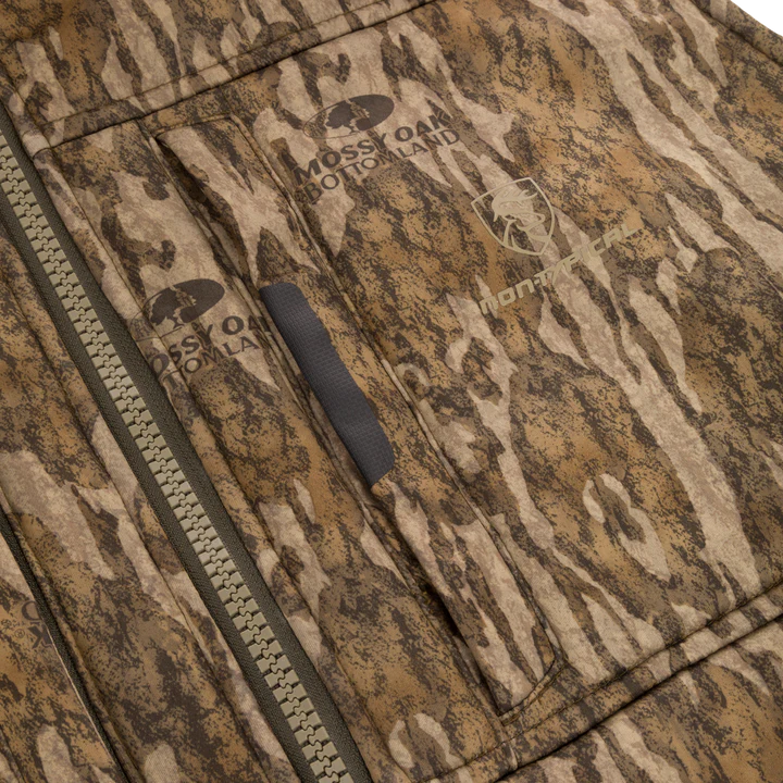 The Midweight Nova Silencer Vest is the perfect addition to any outdoor enthusiast's wardrobe. It's 11oz 100% Polyester bonded Interlock and sherpa fleece material provides exceptional warmth and breathability. Anti-odor and antimicrobial technologies ensure protection against unwanted odors. With additional features such as DWR treatment, Magnattach chest pocket, YKK zippers, and safety harness pass-through opening, this vest is both functional and durable.