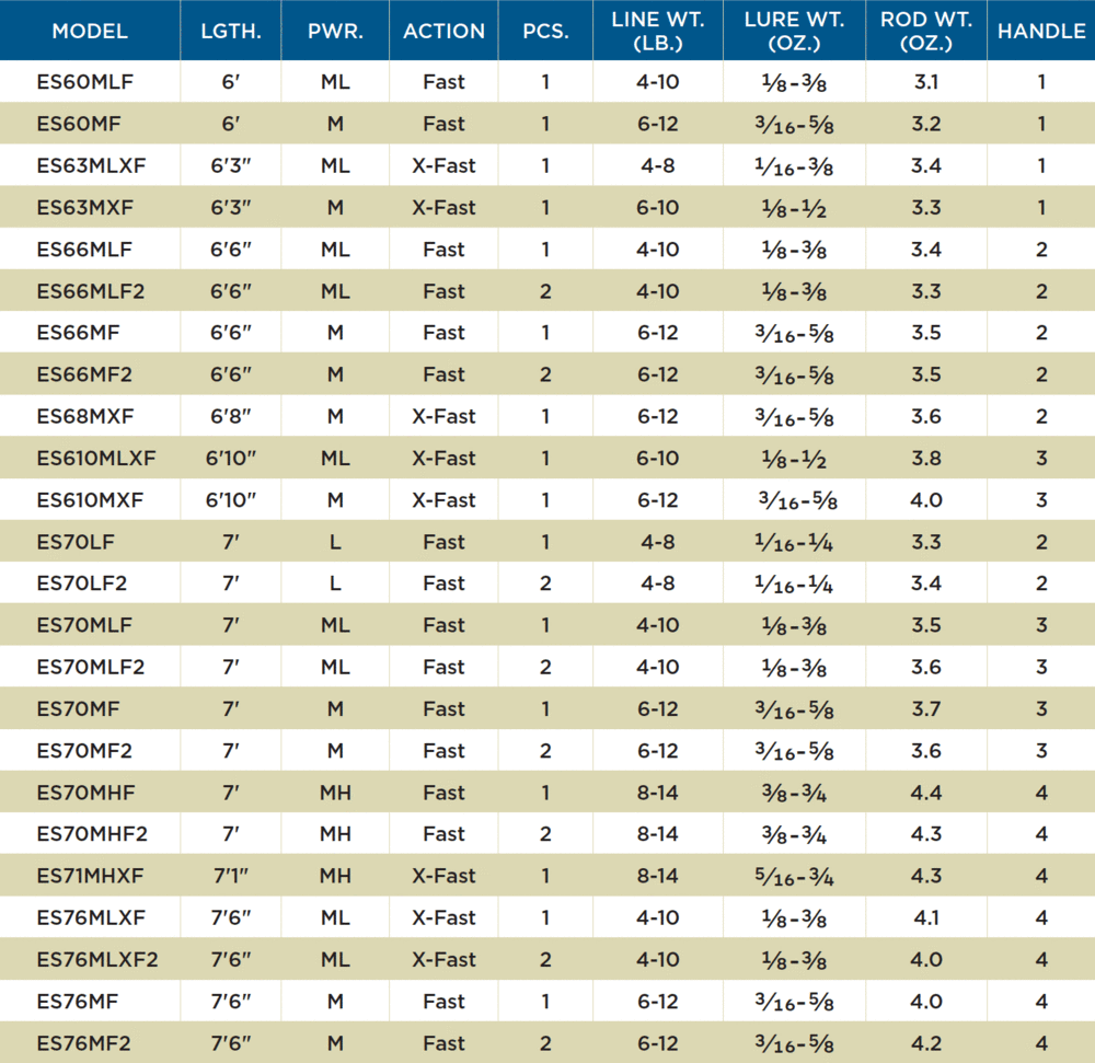 - Taper Enhancement Technology (TET) blank design provides curved patterns for improved action with increased sensitivity.